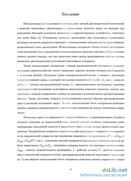 Использование low-k материалов (материалов с низкой диэлектрической постоянной) в качестве межслойных диэлектриков в микросхемах является одним из подходов для повышения объемной плотности элементов в микроэлектронных устройствах, известном как закон Мура [1]. Уменьшение толщины диэлектрика при уменьшении характерных размеров элементов микросхем приводит к возникновению наводок между проводниками, разделенными слоем диэлектрика. Использование материала с более низкой диэлектрической постоянной (чем у традиционно использующегося диоксида кремния Si02) позволяет снизить уровень наводок, так как емкостная связь между проводниками обратно пропорциональна диэлектрической постоянной межслойного материала.