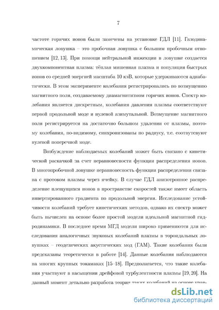 зарегистрированы продольные колебания в ячейках ловушки на частоте, близкой к локальной баунс-частоте ионов. Эти колебания были идентифицированы как баунс-неустойчивость продольной звуковой волны [7], которая вызвана инверсным градиентом по продольной энергии функции распределения запертых ионов. Неравновесная функция распределения может формироваться за счет столкновительного «трения» с пролетными ионами. Интерес к этим колебаниям связан с тем, что они могли бы эффективно рассеивать пролетные ионы, так как их частота близка обратному времени пролета иона через ячейку гофрировки. Недавно подобные звуковые колебания плазмы на средней баунс-частоте горячих ионов были замечены на установке ГДЛ. Таким образом, актуальным является исследование дискретной звуковой моды в плазме открытых ловушек.
