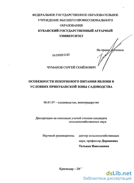 Апробация работы. Основные результаты исследований были доложены на региональных и всероссийских научно-практических конференциях молодых ученых «Научное обеспечение агропромышленного комплекса» (Краснодар, 2002-2007 гг.); международной конференции «Проблемы экологизации современного садоводства и пути их решения» (Краснодар, 2004 г.); Всероссийской научной конференции, посвященной 150-летнию со дня рождения И.В. Мичурина (Мичуринск, 2005 г.); Всероссийской научно-методической конференции молодых ученых «Актуальные проблемы садоводства России и пути их решения» (Орел, 2007 г.); на ежегодных конференциях Кубанского государственного аграрного университета (Краснодар, 2002-2007 гг.).