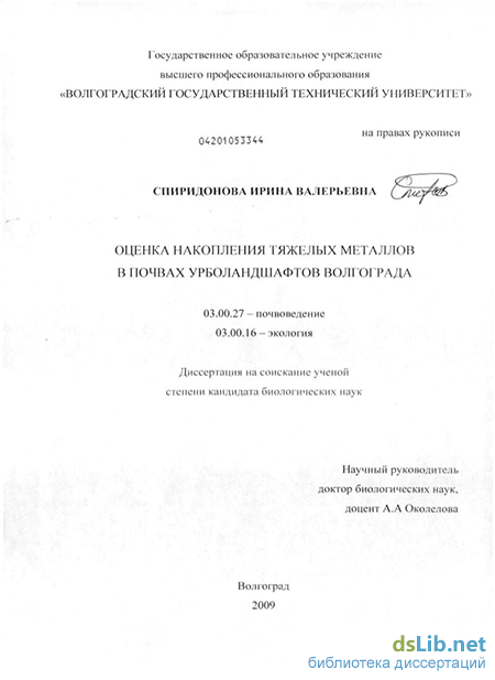 Апробация результатов исследования. Материалы и результаты работы были представлены на научных конференциях аспирантов и молодых ученых ВолгГТУ (2007-2009), доложены и обсуждены на научных конференциях и съезде почвоведов: Всероссийская научно-практическая конференция «Проблемы геологии, охраны окружающей среды и управления качеством экосистем» (Оренбург, 2006); Международная научная конференция «Пространственно-временная организация почвенного покрова: теоретические и прикладные аспекты» (Санкт-Петербург, 2007); региональная научно-практическая конференция «Музей как центр экологического просвещения: опыт инноваций» (Волгоград, 2007), XVIII и XIX краеведческие чтения (Волгоград, 2008, 2009); Первый международный экологический конгресс «Экология и безопасность жизнедеятельности промышл енно-транспортных комплексов ELPIT (Тольятти, 2007); Всероссийская научно-практическая конференция с международным участием «Водохозяйственные проблемы и рациональное природопользование» (Оренбург, 2008); V съезд Всероссийского общества почвоведов (Ростов-на-Дону, 2008); ежегодная Всероссийская научная конференция «Научное творчество XXI века» (Красноярск, 2009); II межрегиональная научно-практическая конференция студентов и молодых ученых «Актуальные проблемы государственной молодежной политики», (Волгоград, 2009), XVI Всероссийская Школа «Экология и почвы» (г. Пущино, ИФХиБПП РАН, 2009).