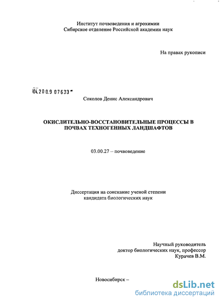 - Окислительно-восстановительные системы почв техногенных ландшафтов как объект исследований