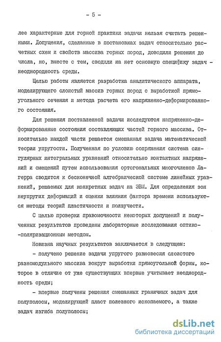 За последние 20 лет аналитические методы горной механики получили существенное развитие. Это обусловлено, главным образом, расширением фундаментальных исследований в различных областях математики и механики сплошных сред, широким применением ЭВМ и использованием их результатов при решении актуальных технических задач. К настоящему времени решены почти все основные задачи плоского напряженного состояния однородного массива вокруг выработок практически любой конфигурации, количества и взаиморасположения. Достаточно корректные решения получены некоторых осесимметричных объемных задач для однородных полупространств, ослабленных конечной цилиндрической выработкой.