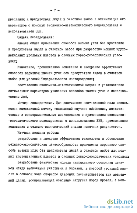 Основная идея работы состоит в определении эффективных и безопасных условий применения взрывного способа выемки угля без крепления и присутствия людей в очистном забое и оптимизации его параметров с помощью экономико-математического моделирования с использованием ЭВМ.