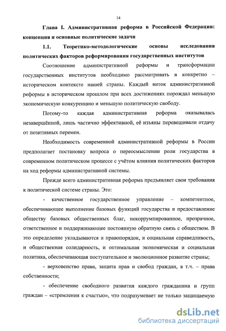 1.1. Теоретико-методологические основы исследования политических факторов реформирования государственных институтов с. 14