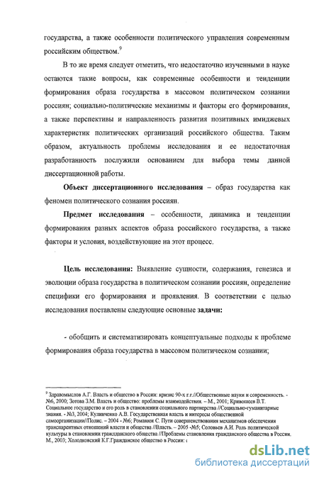 В то же время следует отметить, что недостаточно изученными в науке остаются такие вопросы, как современные особенности и тенденции формирования образа государства в массовом политическом сознании россиян; социально-политические механизмы и факторы его формирования, а также перспективы и направленность развития позитивных имиджевых характеристик политических организаций российского общества. Таким образом, актуальность проблемы исследования и ее недостаточная разработанность послужили основанием для выбора темы данной диссертационной работы.