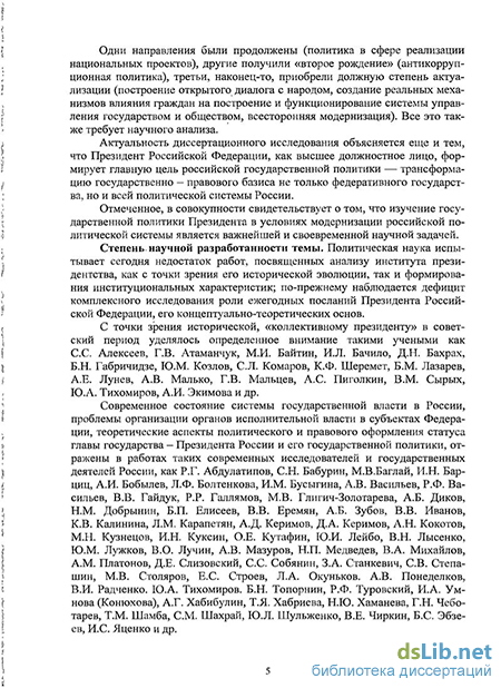 Степень научной разработанности темы. Политическая наука испытывает сегодня недостаток работ, посвященных анализу института президентства, как с точки зрения его исторической эволюции, так и формирования институциональных характеристик; по-прежнему наблюдается дефицит комплексного исследования роли ежегодных посланий Президента Российской Федерации, его концептуально-теоретических основ.