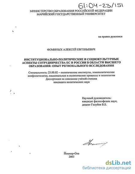 ГЛАВА 1. ИНСТИТУЦИОНАЛЬНО-ПОЛИТИЧЕСКИЕ АСПЕКТЫ СОТРУДНИЧЕСТВА ЕС И РОССИИ В ОБЛАСТИ ВЫСШЕГО ОБРАЗОВАНИЯ