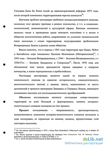 В проведенных автором диссертации исследованиях была принята концепция, согласно которой Западные земли - это Кашубы, Центральное Поморье, Западное Поморье, Земля Лубуская, Верхний и Нижний Шленск; Северные земли - Вармия и Мазуры.