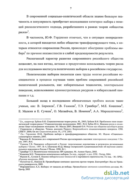 Рискогенный характер развития современного российского общества позволяет, на наш взгляд, активно и продуктивно использовать теории риска для исследования института политических выборов в российском государстве.