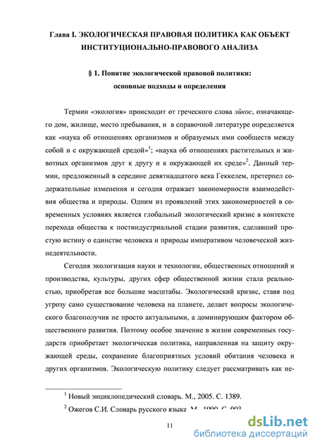 Глава I. Экологическая правовая политика как объект институционально-правового анализа 11