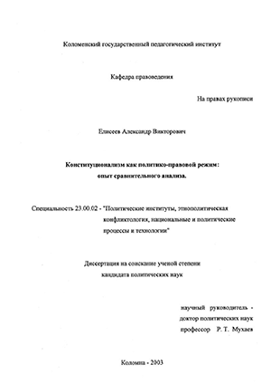 Елисеев Александр Викторович. Конституционализм как политико-правовой режим: : Опыт сравнительного анализа : диссертация ... кандидата политических наук : 23.00.02.- Москва, 2003.- 204 с.: ил. РГБ ОД, 61 03-23/134-6