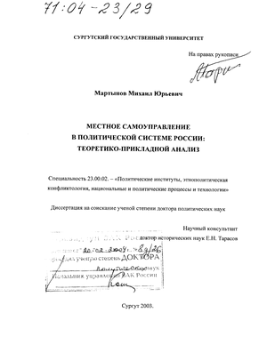 1 См.: Мартынов М.Ю. Местное самоуправление в политической системе России. Сургут. 2003.