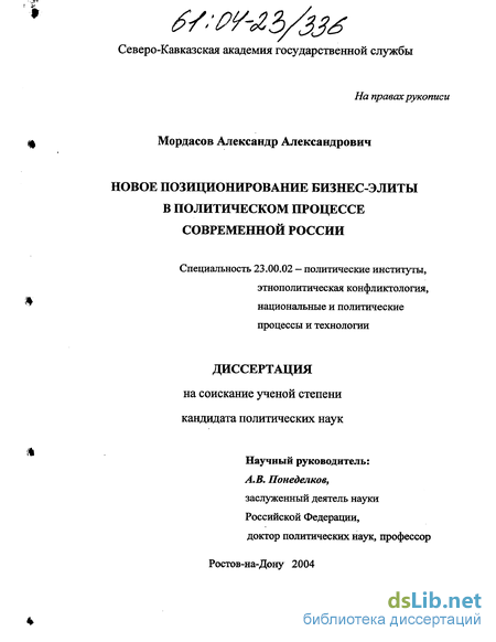сформулировать с учетом российских условий: специфику теоретического исследования проблем политического позиционирования бизнес-элиты» и представителей крупного бизнеса;: