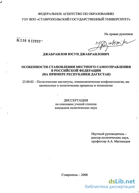 развития муниципальной власти в Республике Дагестан: Дис. канд. полит, наук. - М., 2006.