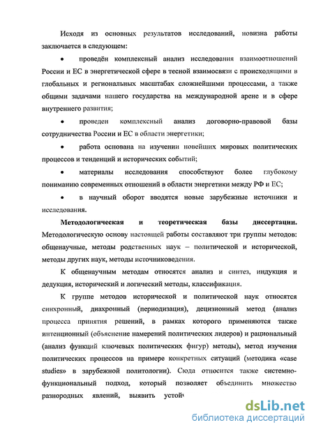 в проведён комплексный анализ исследования взаимоотношений России и ЕС в энергетической сфере в тесной взаимосвязи с происходящими в глобальных и региональных масштабах сложнейшими процессами, а также общими задачами нашего государства на международной арене и в сфере внутреннего развития;