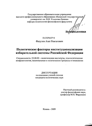 Целью настоящей работы является исследование влияния политических факторов на институционализацию избирательной системы Российской Федерации, анализ характера взаимодействия данного института и других элементов политической системы.