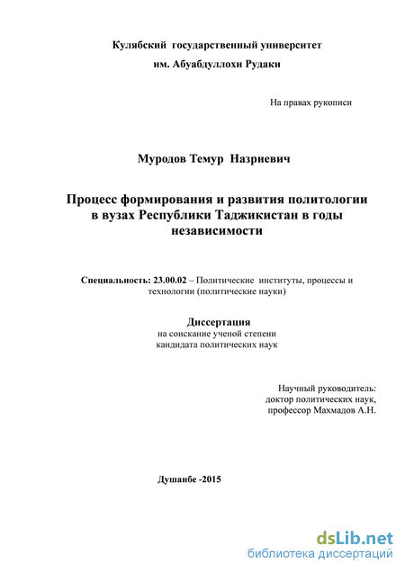 - Историко-политические аспекты процесса формирования и развития политологии в системе высшего образования Республики Таджикистан
