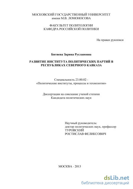 - Анализ структурных особенностей партийных систем республик Северного Кавказа