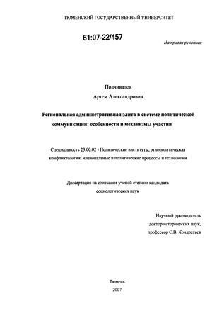 -Подчивалов А.А. Административная элита в системе политической коммуникации: некоторые теоретические аспекты изучения вопроса // Вестник Тюменского государственного университета. - 2006. - № 6. - С. 184-188;