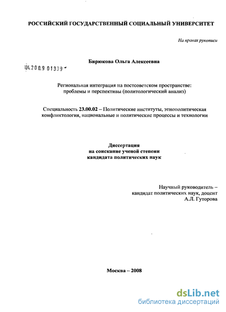 Цель диссертации. Целью настоящего исследования является анализ реальных процессов региональной интеграции на постсоветском пространстве.
