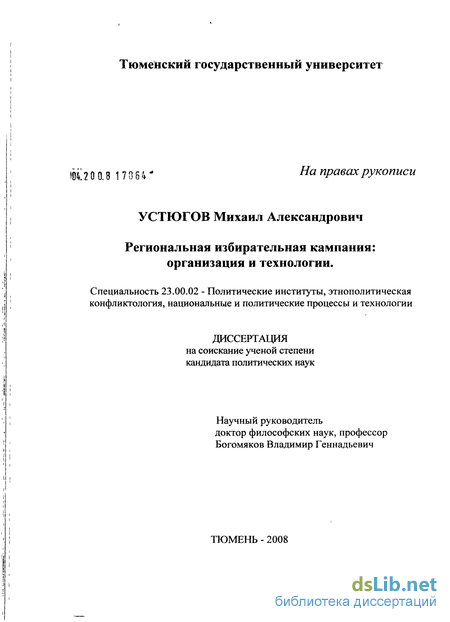 Предметом данного исследования являются избирательные технологии и характер, способы, механизмы организации и проведения региональных избирательных кампаний.