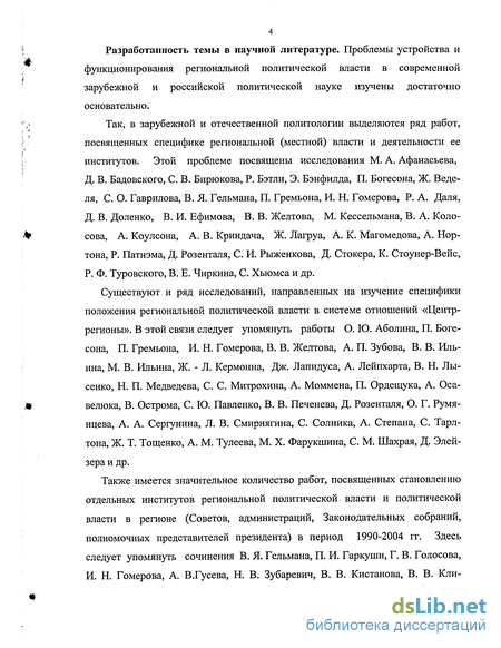 Разработанность темы в научной литературе. Проблемы устройства и функционирования региональной политической власти в современной зарубежной и российской политической науке изучены достаточно основательно.