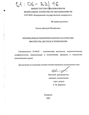 Диссертационная работа посвящена исследованию специфики региональной политической власти, ее институтов, ресурсов и технологий. Региональная политическая власть является именно тем политическим актором, который опосредует отношения Центра и регионов, оказывает влияние на протекание политических процессов общенационального и регионального уровней, согласует интересы столицы и периферии. Рассмотрение ее институтов, а также ресурсов и технологий позволяет глубже понять тот контекст, в котором протекают политические процессы и формируются властные отношения на региональном уровне.