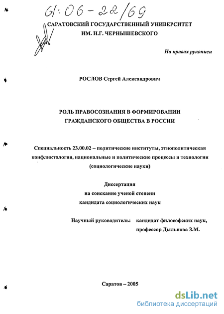 политические науки. 1992. № 8; Гадокиев КС. Концепция гражданского общества: идейные истоки и основные вехи формирования // Вопросы философии. 1991. № 7; Голенко-ва З.Т. Гражданское общество в России // Социологические исследования. 1997. № 3; Ильин М.В., Коваль Б.И. Две стороны одной медали: гражданское общество и правовое государство // Полис. 1992. № 1-2; Кравченко А.И. Концепция гражданского общества в философском развитии // Полис. 1991. № 5; Левин И.Б. Гражданское общество на Западе и в России // Полис. 1996. № 5; Магомедов КО. Формирование гражданского общества в современой России (социологический аспект): Автореф. дис. ... д-ра социол. наук. М., 2000; Матузов Н.И. Гражданское общество: сущность и основные принципы // Правоведение. 1995. № 3; Перегудов СП. Новейшие тенденции в изучении отношений гражданского . общества и государства // Полис. 1998. № 1; Плешаков А.П. Социальная государственность и общественное правосознание в Российской Федерации. Саратов, 2001; Резник Ю.М. Гражданское общество как феномен цивилизации. М., 1993; ФедотовА.С. Гражданское общество: проблемы развития и современные формы. Саратов, 2004; Черниловский З.М. Гражданское общество: опыт исследования // Государство и право. 1992. № 6; Ядов В.А. Россия как трансформирующееся общество // Общество и экономика. 1999. № 10-11 и др. 1 Байниязов Р.С. Правосознание и правовой менталитет в России: введение в общую теорию. Саратов, 2001; Баранов П.П. Теория систем и системный анализ правосознания личного состава органов внутренних дел. Ростов н/Д., 1997; Бегинин В.И. Общественное пре-восознание и государственность. Саратов, 1993; Бельский КТ. Формирование и развитие социалистического правосознания. М., 1982; Гранат Н.Л. Правосознание и правовое воспитание // Общая теория государства и права. Академический курс: В 2 т. / Под ред. М.Н. Марченко. Теория права. М., 1998; Каминская В.И, Ратинов А.Р. Правосознание как