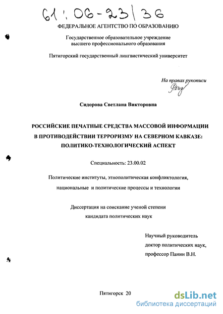 Диссертация обсуждена и рекомендована к защите на заседании кафедры управления, политологии и социологии Пятигорского государственного лингвистического университета.