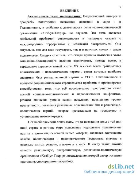 Исследуя проблемы исламского движения в Центральной Азии и особенности появления «Хизб-ут-Тахрир» в Республике Таджикистан, диссертант указывает на недостаточность исследования и изучения данной проблемы. Правда, за последние годы этой проблеме посвящен ряд работ,1 в которых рассматриваются вопросы движения политического Ислама и появления «Хизб-ут-Тахрир» в Таджикистане в общих чертах. В этих работах отсутствует конкретный анализ социально-политических и духовных факторов, способствующих возникновению и движению политического ислама в Центральной Азии. В имеющейся по этой проблеме литературе недостаточно показаны особенности появления «Хизб-ут-Тахрир» в Таджикистане.