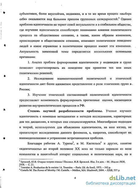 В трудах отечественных и зарубежных исследователей доказано наличие множества идентичностей и возможность их реального взаимодействия. Однако вопрос о соотношении политической и этнической идентичности еще не был предметом специального изучения, что является аргументом в пользу новизны темы данного диссертационного исследования.