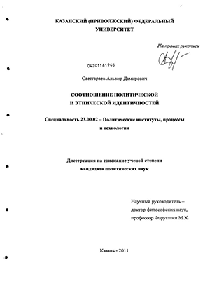 Апробация результатов исследования. Диссертация обсуждалась на заседании кафедры политологии Казанского (Приволжского) федеральноо университета, где была рекомендована к защите.