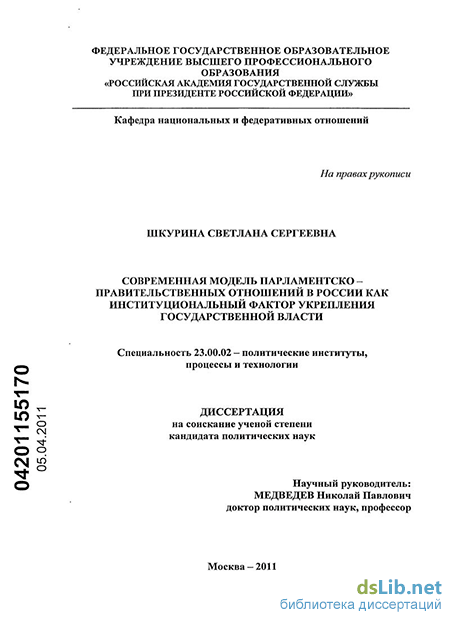 Цель исследования - на основе методологии политологического исследования выявить сущность и специфику российской модели парламентско - правительственных отношений в условиях партийной системы с доминирующей партией и развитие на этой основе централизованной системы политической власти.