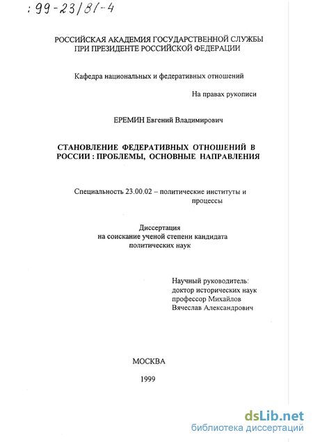 Предметом исследования является процесс развития федеративных отношений в России на современном этапе, анализ путей их совершенствования.