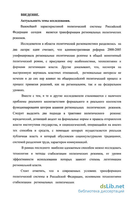 Важнейшей характеристикой политической системы Российской Федерации сегодня является трансформация региональных политических режимов.