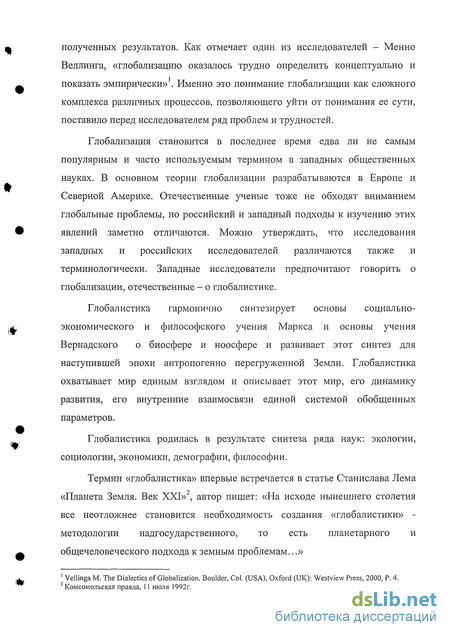 В последнее десятилетие глобалистика - или наука о глобализации -бурно развивается, причем на первый план выходят фундаментальные проблемы мироустройства. В поисках точки приложения сил фокус исследований смещается с отдельных проявлений глобализации, прежде всего в экономике, к тектоническим сдвигам, которые переживает мир, общество, человек. Сложность изучения данной проблематики исследования обуславливается тем, что пока глобалистика берет больше числом, чем умением, и поэтому не всегда обилие работ гарантирует качество