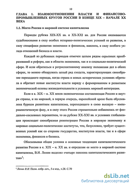 ГЛАВА 1. ВЗАИМООТНОШЕНИЯ ВЛАСТИ И ФИНАНСОВО-ПРОМЫШЛЕННЫХ КРУГОВ РОССИИ В КОНЦЕ XIX-НАЧАЛЕ XX ВЕКА 10