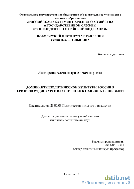 занимающихся вопросами политической культуры в различных ее проявлениях, а также политического дискурса власти. Положения диссертации могут использоваться при подготовке курсов по истории политической культуры России, политическому анализу, теории политики, политической психологии.