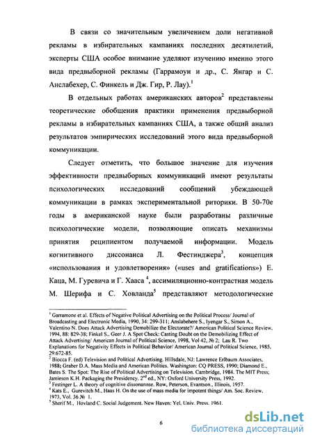 2.2. Методики и результаты исследований предвыборной рекламы в социологии США 90