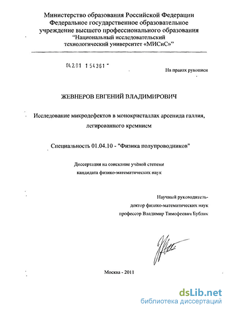 Изучаемые в настоящей работе монокристаллы арсенида галлия, легированного кремнием GaAs(Si), широко используются в современной электронной промышленности. В работе исследован GaAs(Si), выращенный в промышленных условиях методом горизонтально направленной кристаллизации (ГНК), методом вытягивания из расплава из-под слоя флюса (метод Чохральского, или LEC-технология - Liquid Encapsulated Chochralsky), и вертикально направленной кристаллизации (ВНК). Получение относительно чистых и совершенных монокристаллов GaAs(Si) доказывает существенное влияние СТД на физические свойства материала. Вместе с тем, существуют объективные методические трудности, связанные с отсутствием методики определения состава СТД и единой теории образования МД на его базе. GaAs(Si) в современной литературе уделено достаточное внимание, однако ощутим недостаток надёжных однозначных данных о механизме происходящих в исследуемом материале процессов распада пересыщенных твёрдых растворов точечных дефектов (ТД) и схеме образования МД. Недостаточно выявлено влияние легирования и процесса компенсации амфотерной примеси Si на концентрацию и распад СТД.