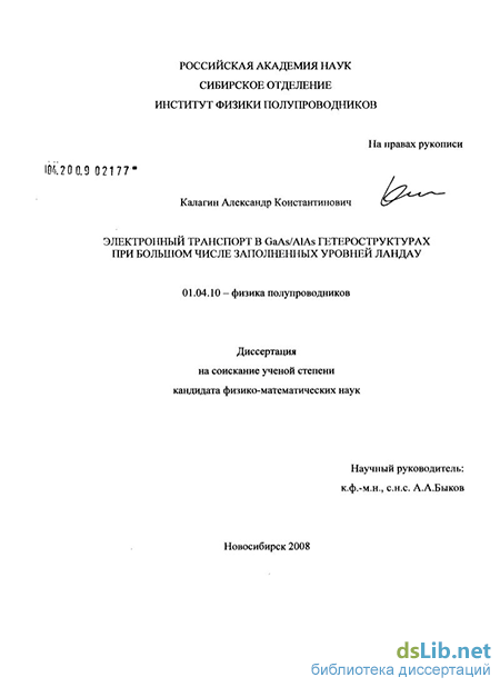 Калагин Александр Константинович. Электронный транспорт в GaAs/AlAs гетероструктурах при большом числе заполненных уровней Ландау : диссертация ... кандидата физико-математических наук : 01.04.10 / Калагин Александр Константинович; [Место защиты: Ин-т физики полупроводников СО РАН].- Новосибирск, 2008.- 102 с.: ил. РГБ ОД, 61 09-1/291