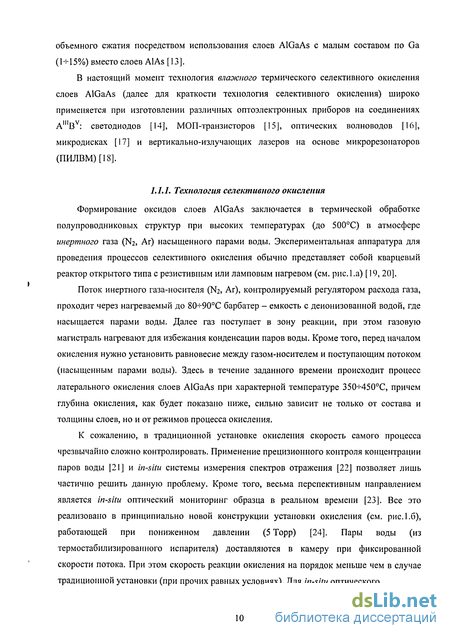 Весьма перспективным решением указанных проблем является использование полупроводниковых оптических микрорезонаторов, сформированных при помощи селективного окисления А1-содержащих слоев [3]. Уникальность данной технологии состоит в том, что она позволяет создавать скрытые диэлектрические слои высокого структурного качества с требуемыми электрическим и оптическими параметрами в едином процессе и может быть применена для обеспечения эффективного токового и оптического ограничений одновременно. В тоже время проблемы воспроизводимости и стабильности параметров селективного окисления А1-содержащих слоев, а также механической надежности приборов после окисления до сих пор остаются нерешенными. Следует отметить, что волноводный эффект оксидной апертуры и неоднородная инжекция носителей по площади токовой апертуры, свойственная для ПИЛВМ, могут приводить к