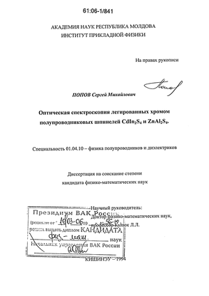Кристаллы, являющиеся объектом исследования данной работы, были получены в лаборатории полупроводниковых соединений Института прикладной физики АН РМ.
