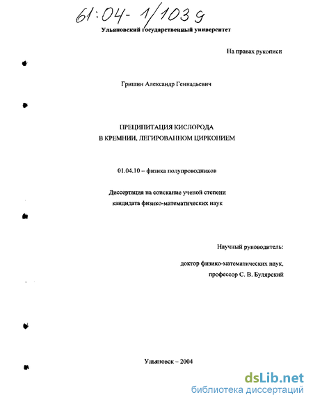 - Экспериментальное исследование преципитации кислорода в кремнии, легированном цирконием