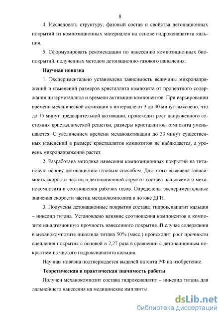 В связи с вышеизложенным, данная работа по разработке композитов на основе гидроксиапатита кальция и исследованию свойств кальций-фосфатного биосовместимого детонационного покрытия является актуальной.