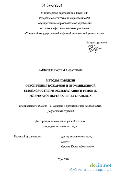 Глава 1 Современное состояние проблем обеспечения пожарной и промышленной безопасности эксплуатации нефтяных резервуаров 9
