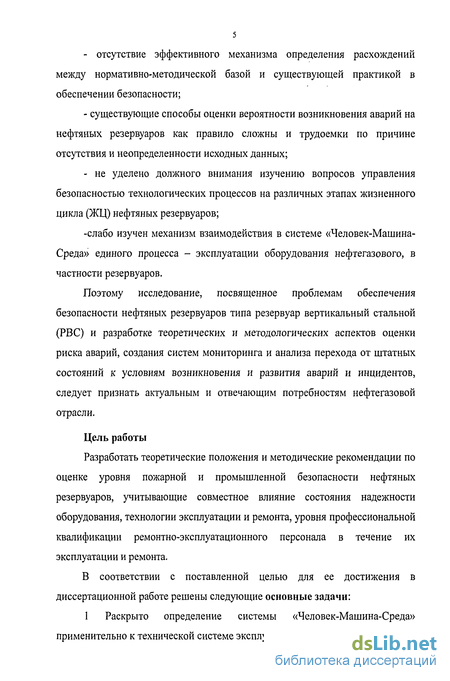 Объектом исследования является сложная система «Человек-Машина-Среда» (СЧМС) по обеспечению жизнедеятельности резервуаров типа РВС и РП.