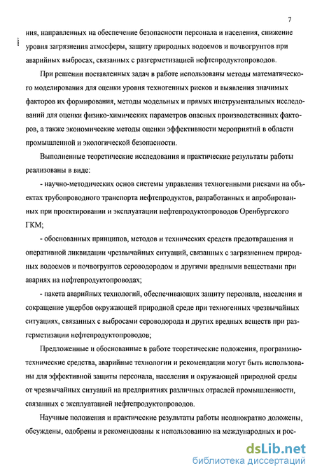 обоснованных принципов, методов и технических средств предотвращения и оперативной ликвидации чрезвычайных ситуаций, связанных с загрязнением природных водоемов и почвогрунтов сероводородом и другими вредными веществами при авариях на нефтепродуктопроводах;
