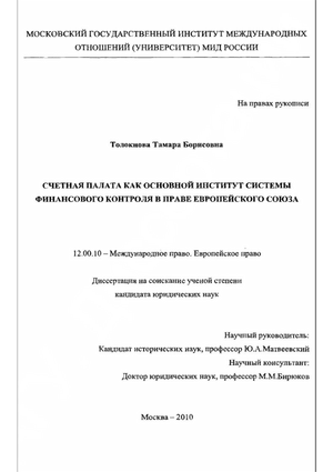 Научная новизна исследования На настоящий момент в Российской Федерации отсутствуют публикации, специально посвященные Европейской счетной палате и правовым аспектам системы финансового контроля в ЕС Исключением является ищанная соискателем в 2009 г монография по теме исследования4