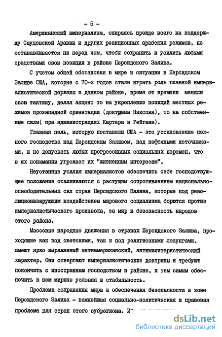 Критика политических, правовых и милитаристских концепций Соединенных Штатов Америки, относящихся к проблеме обеспечения мира и безопасности стран Персидского Залива тоже является одной из основных целей данного исследования. Это прежде всего отно сится к так называемым концепциям "Ваккума", "национальной безопасности" (США- Д.Р.), "жизненно-важных интересов" (опять СІЛА- Д.Р. "коллективной безопасности" (США и реакционных режимов субрегиона), "коммунистического проникновения" и т.п.